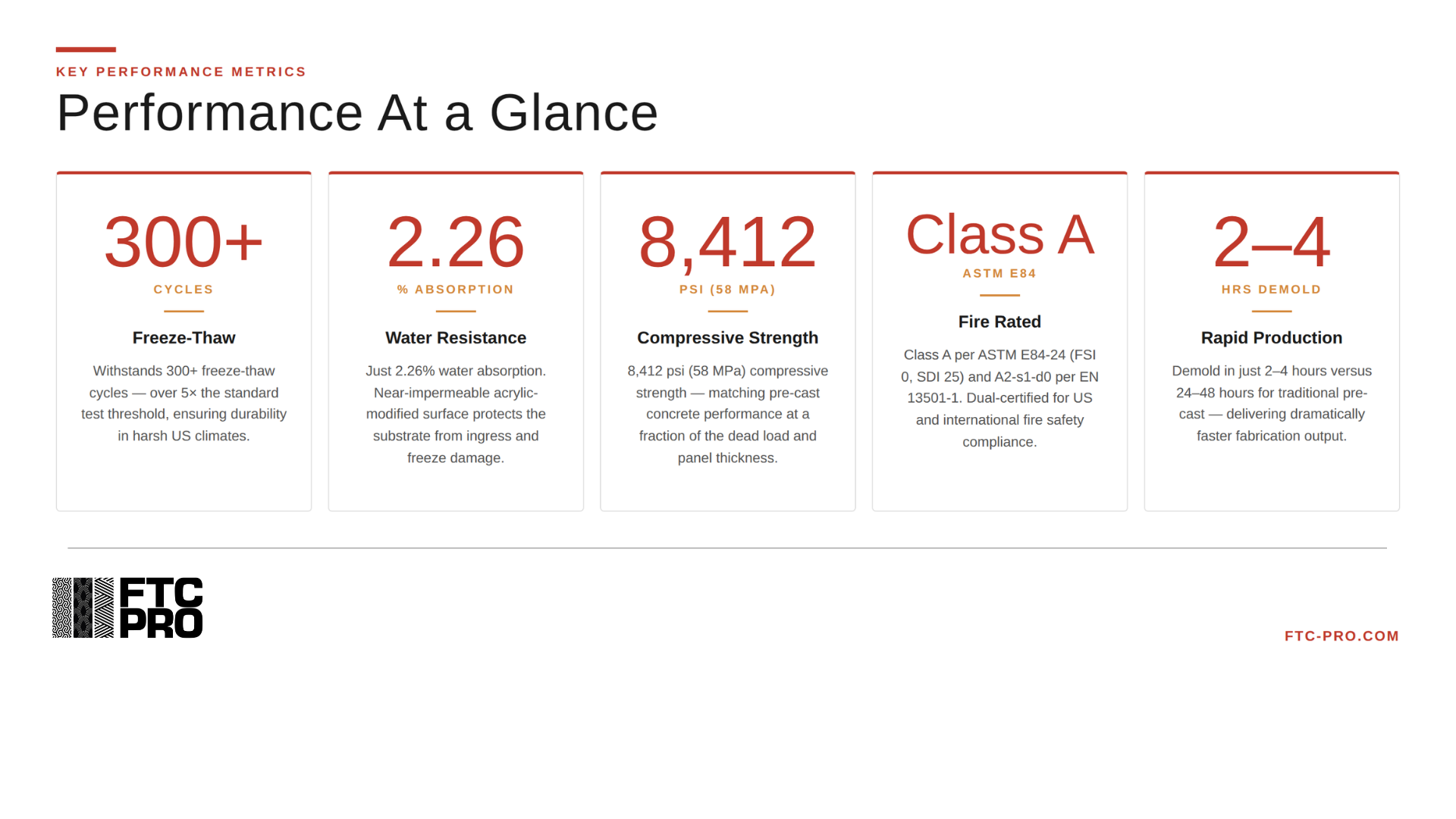 | Freeze-Thaw Resistance | 300 cycles | DD CEN/TS 12390-9 |